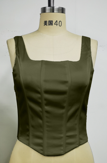Anna Women's Top Corset Olive Vest With Back Smocking